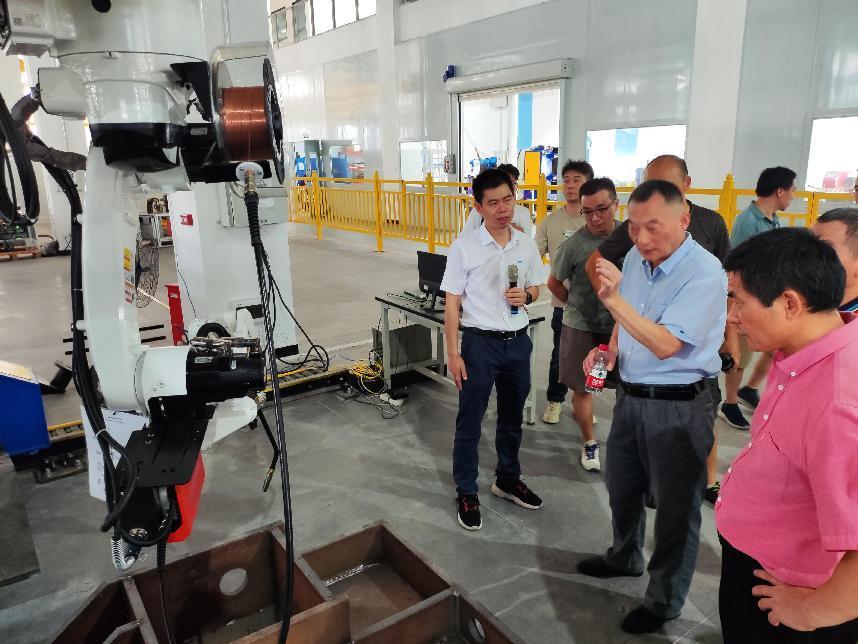 随后,我校教师来到了中国机器人产业的重要基地之一佛山华数机器人有限公司。公司部长杨冲介绍了公司机器人研发和生产的基本情况。在企业负责人的陪同下参观了公司各类型机器人的生产车间、调试测试车间以及机器人研发车间。在华数机器人展示区,教师们见到了成片的机器人在高精度、高效率地执行任务动作作业场景,特别是无人自动跟踪焊缝机器人技术应用,令人印象深刻。通过与企业技术人员的互动交流,教师们深入了解了机器人技术的最新成果及行业发展动态。