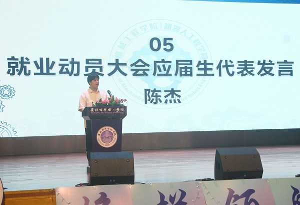 接着,毕业生代表21级机械工程(创新班)陈杰上台发言,他表示作为一名应届毕业生,我们即将告别熟悉的校园,踏上新的征程。在这个关键时刻,我们要对自己的未来有一个清晰的认识和规划。就业是我们每个人都必须面对的现实问题,它不仅关系到我们的生活质量,更关系到我们的人生价值。因此,我们要把握住这个重要的机遇,为自己的未来努力拼搏。