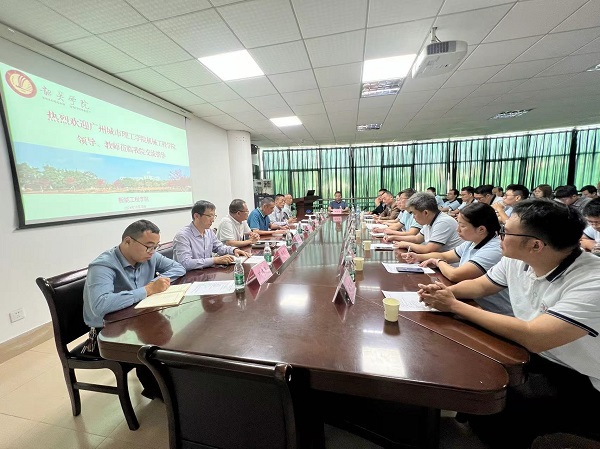 在交流会上,韶关学院智能工程学院党委书记梁健、党委副书记陈志厚、副院长龙迎春以及各专业负责人悉数出席,热情接待了我院教师一行。梁健书记首先介绍了韶关学院的整体情况,并详细展示了智能工程学院在近年来的发展成果。随后,黄汉雄也对我校基本情况、学院概况、办学特色、获奖成果与科研情况等方面进行全面介绍。