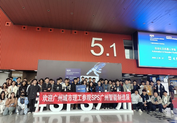 本网讯(记者 庄东武)2月25日至27日,广州琶洲展馆A区迎来了备受瞩目的SPS(Smart Production Solutions)广州国际智能制造技术与装备展览会。作为华南地区智能自动化解决方案的重要商贸平台,展会吸引了来自全球的700多家参展品牌和企业,涵盖机器人、人工智能、智能制造、工业自动化等多个领域。展会期间,正值新学期开学,suncitygroup太阳新城/机器人工程学院副院长邓达强带领70多名机器人工程专业、人工智能专业学生,及机器人野狼队、华汽电动车队队员前往观展。