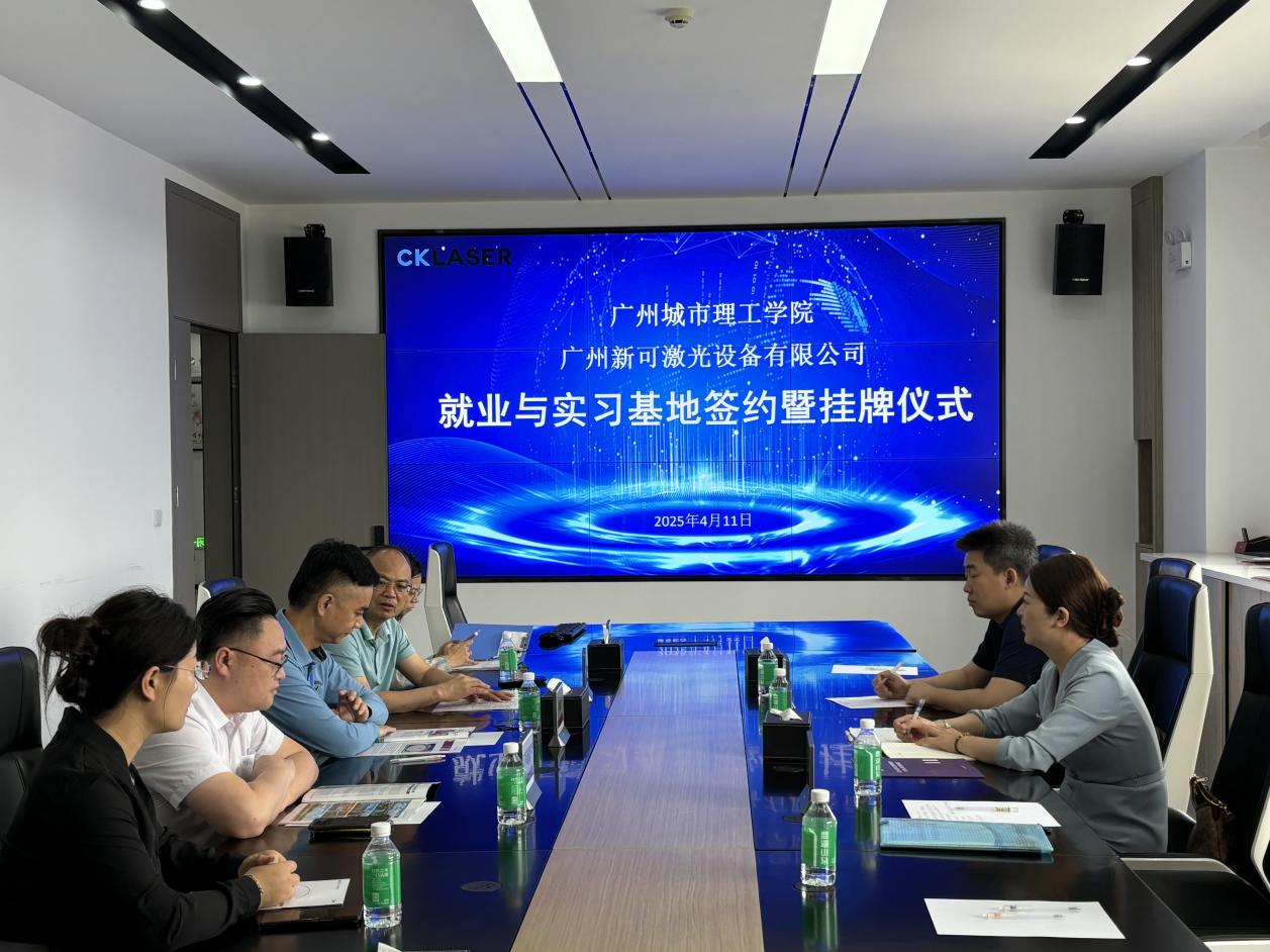 挂牌仪式正式开始前,广州创可激光有限公司总经理徐强热情地带领大家参观了公司的展厅、研发中心等部门。他详细介绍了公司的主要产品和业务范围,从激光切割设备到激光焊接系统,这些业务广泛覆盖了多个工业领域。他表示:欢迎广州城市理工学院的到来,希望通过校企合作平台为激光设备领域输送更多的专业人才。公司一直专注于激光技术的研发和应用,在行业内积累了丰富的经验和良好的口碑,目前正处于快速发展阶段,对专业人才的需求日益迫切。
