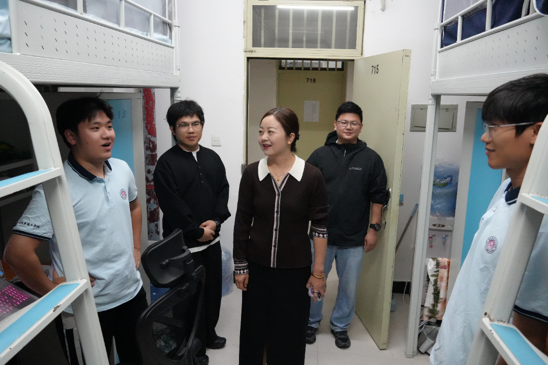 走访期间,她亲切询问大家的学习、生活情况,倾听学子心声,并叮嘱同学们注意身心健康,保持积极心态。一句句暖心问候,拉近了师生距离,让关怀落到实处。