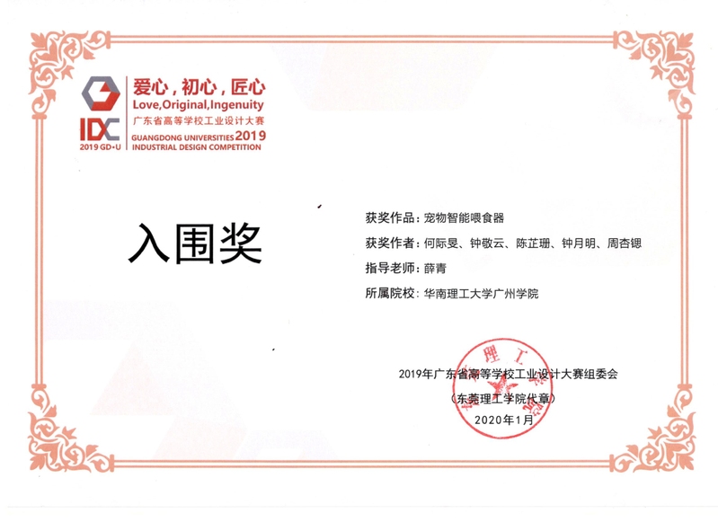 2019年广东省高等学校工业设计大赛入围