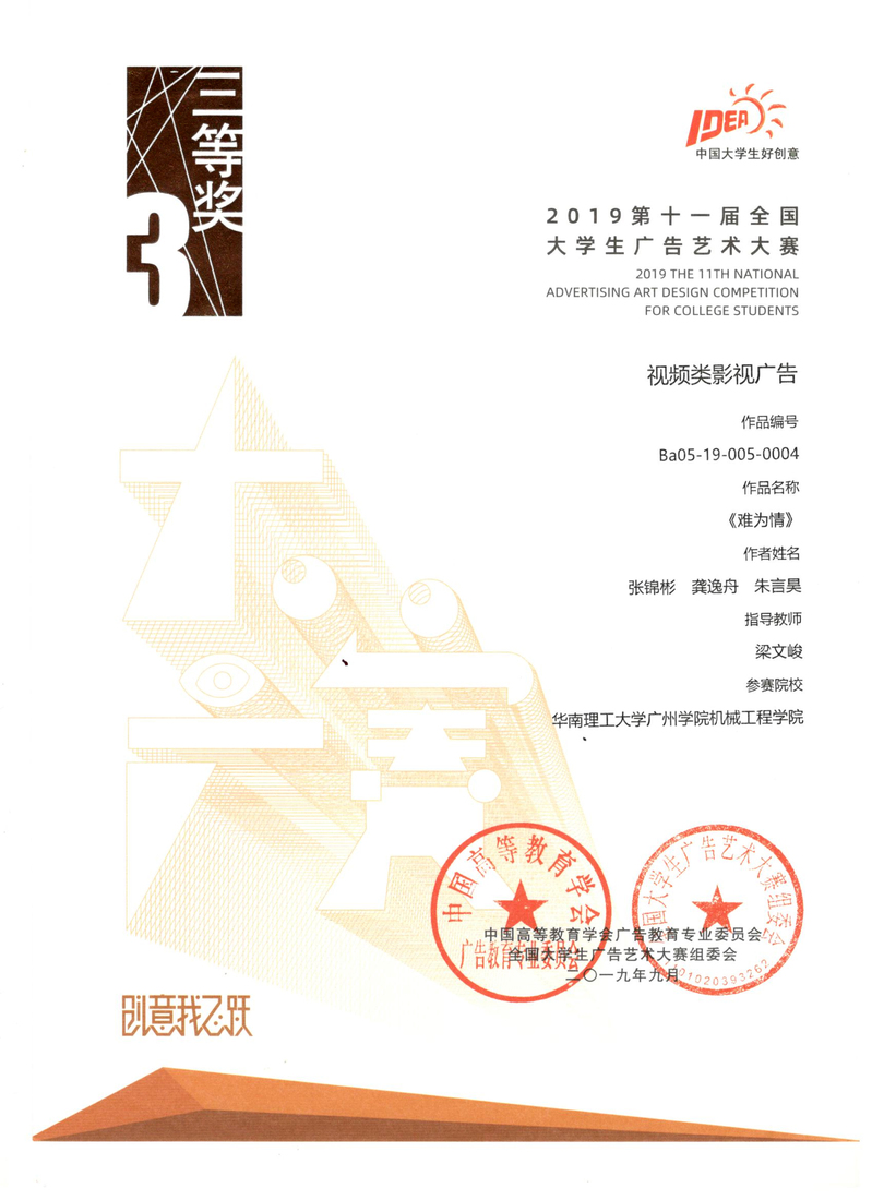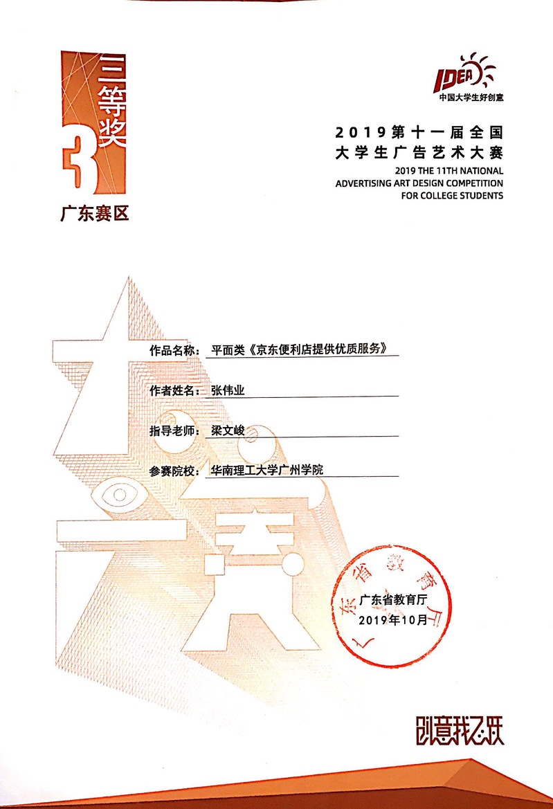 张伟业获广东赛区三等奖