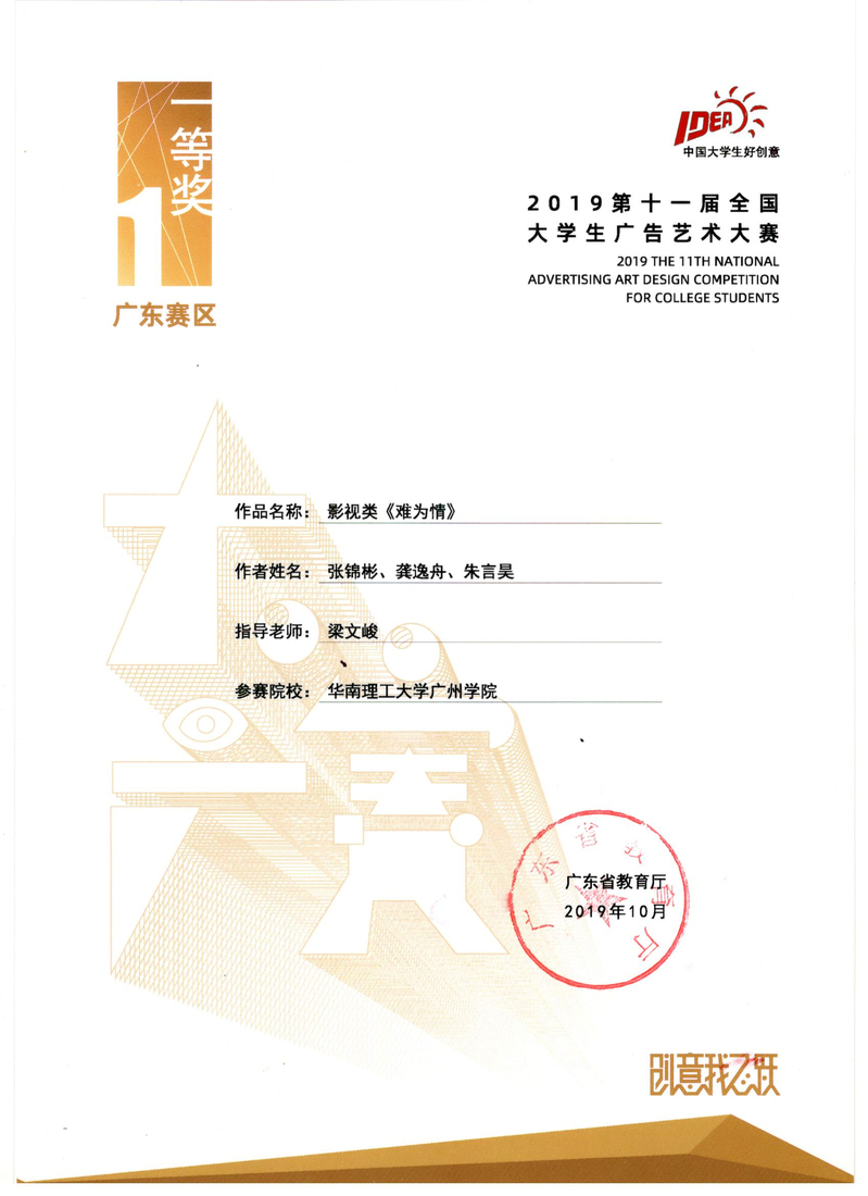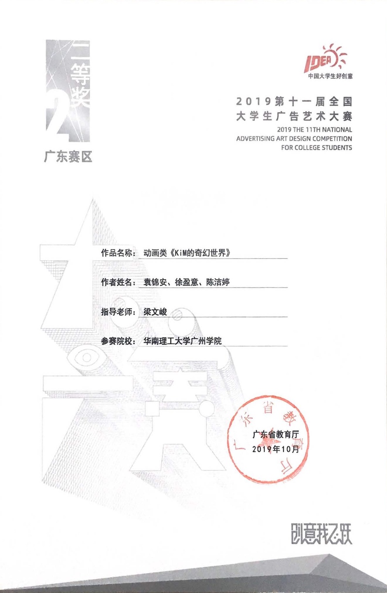 袁锦安、徐盈意、陈洁婷获广东赛区二等奖