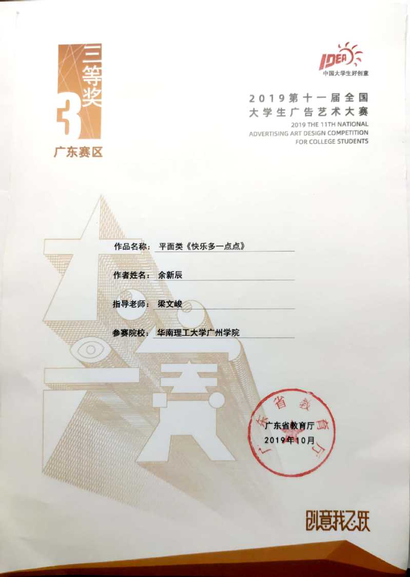 余新辰获广东赛区三等奖