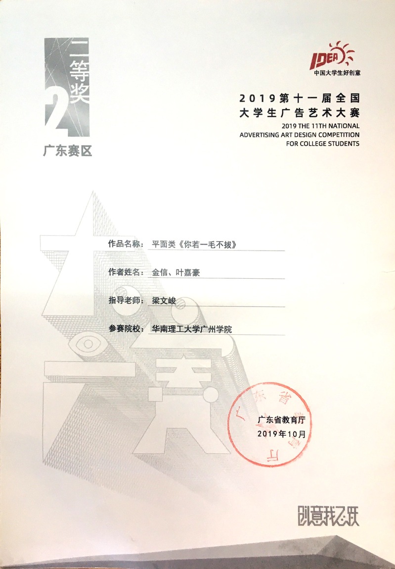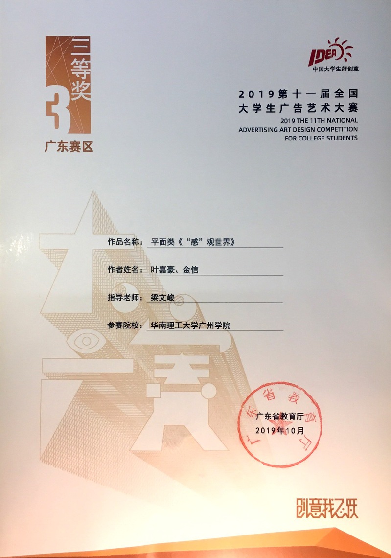 叶嘉豪、金信获广东赛区三等奖