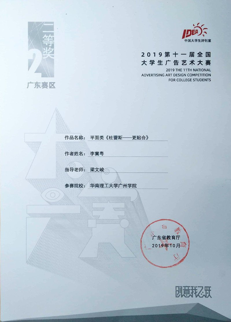 李冀粤获广东赛区二等奖