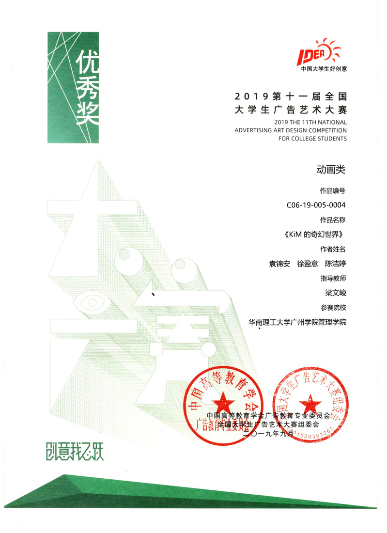 袁锦安、徐盈意、陈洁婷获全国优秀奖