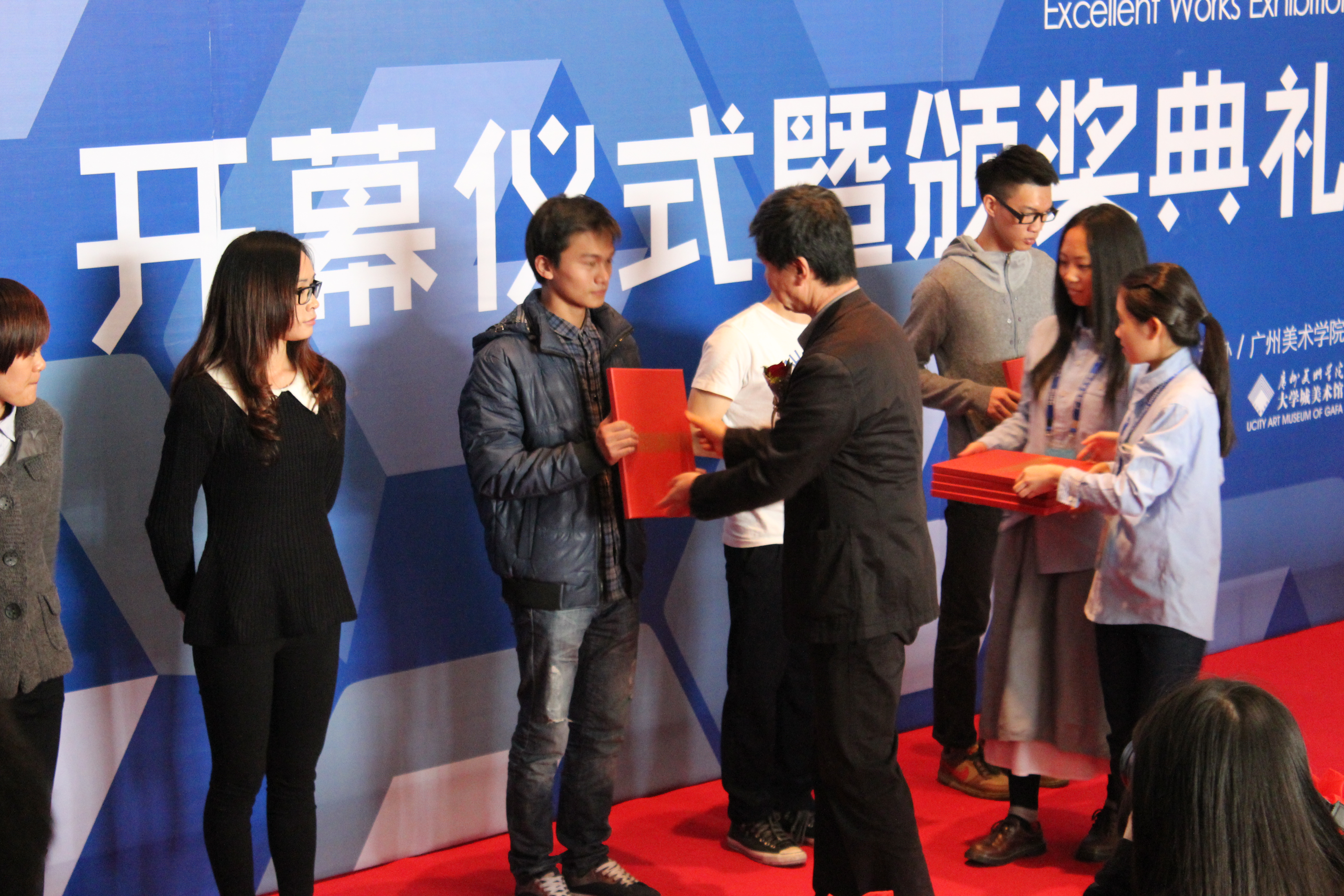 图4 广州美术学院设计学院院长童慧明为三等奖获奖学生颁奖
