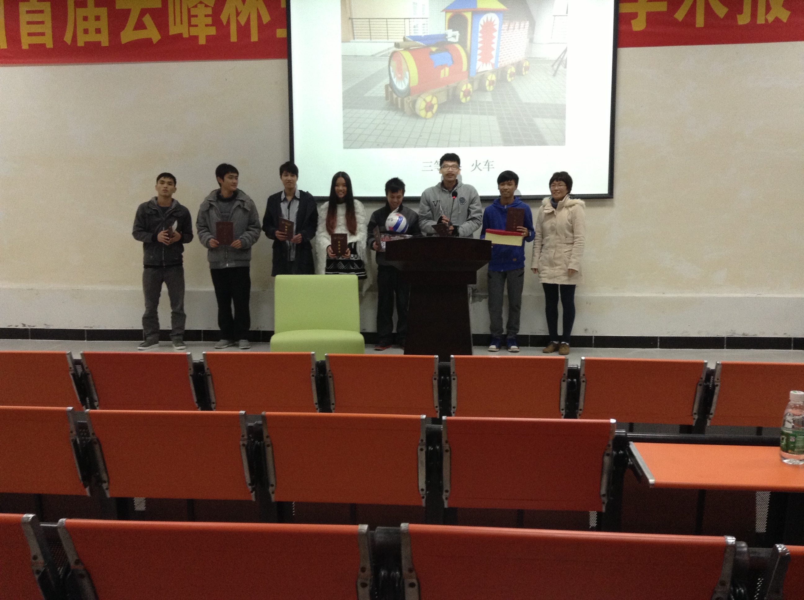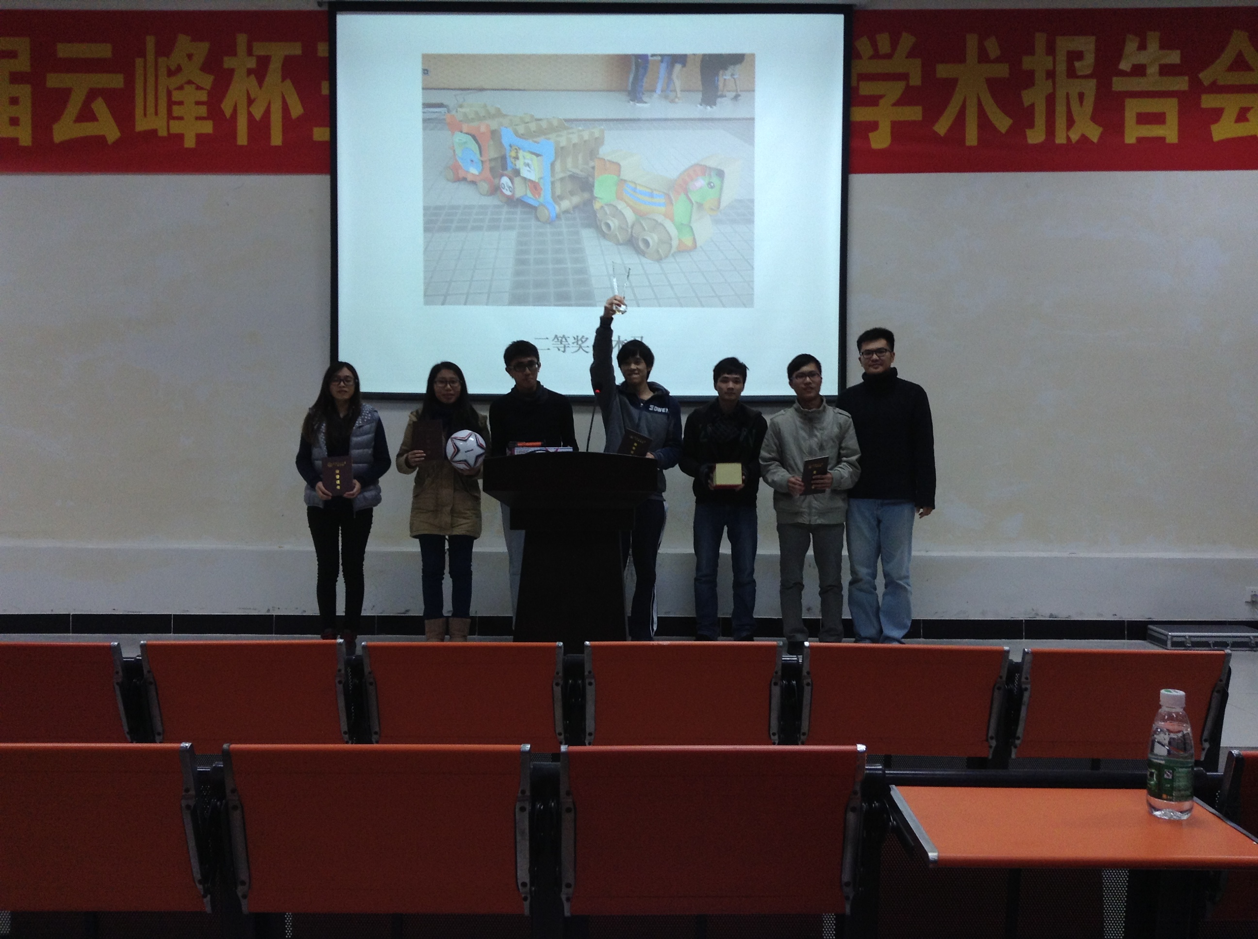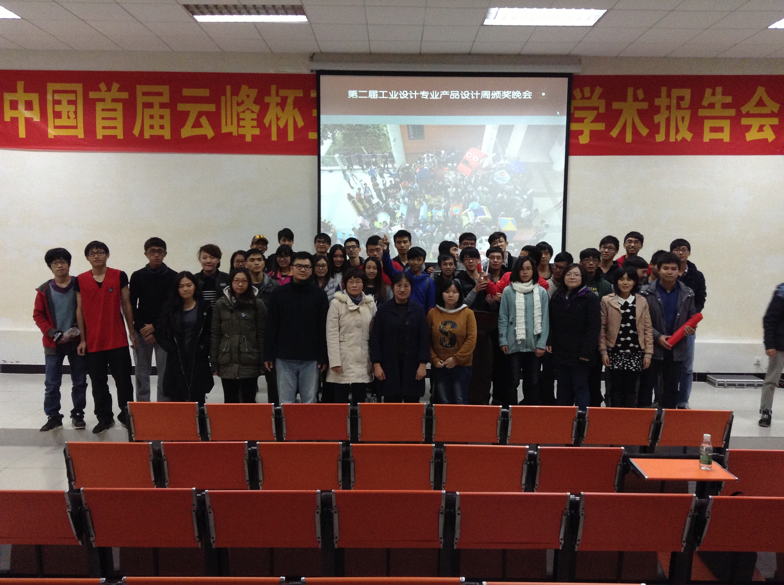 2013年12月19日(周四)晚上19:00在A7-101举行了第二届工业设计产品设计周颁奖晚会,晚会的出席嘉宾分别有:南理工大学广州学院教务处副处长、suncitygroup太阳新城副院长林颖教授、工业设计教研室副主任梁文峻老师、工业设计教研室副主任薛青老师、工业设计教研室教师冯颖老师为获奖队伍颁奖。