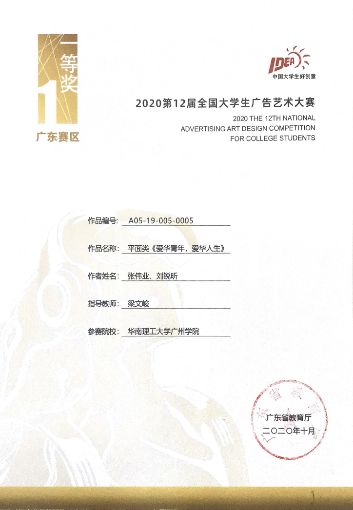 张伟业、刘锐昕获广东赛区一等奖