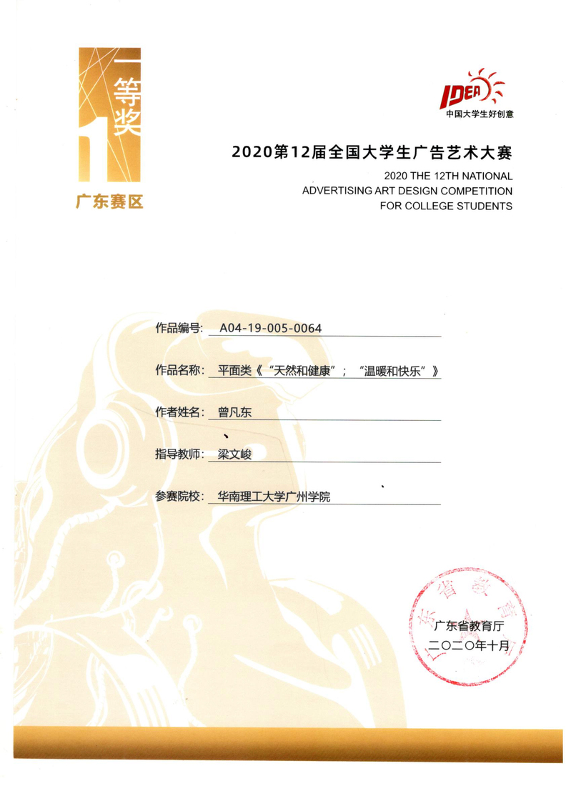 曾凡东获广东赛区一等奖