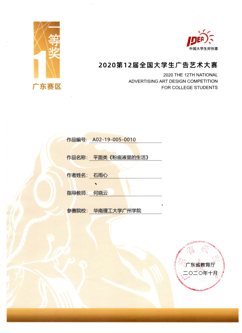 石雨心获广东赛区一等奖