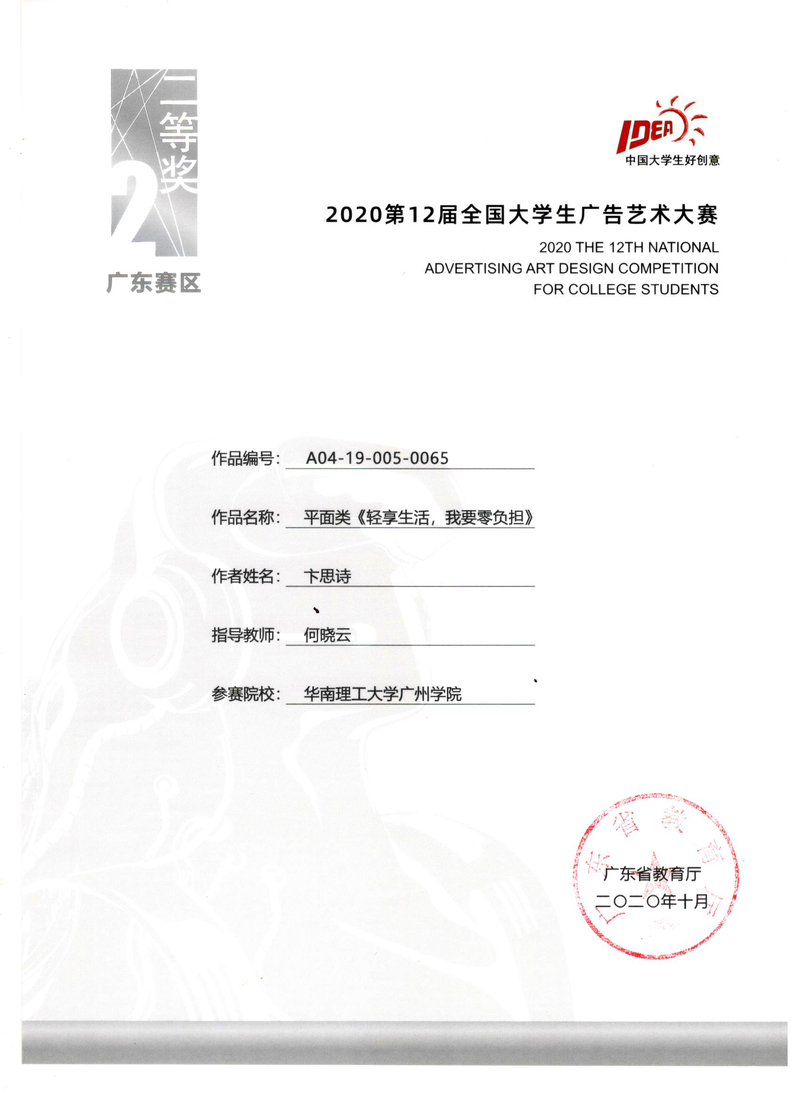 卞思诗获全国优秀奖、广东赛区二等奖