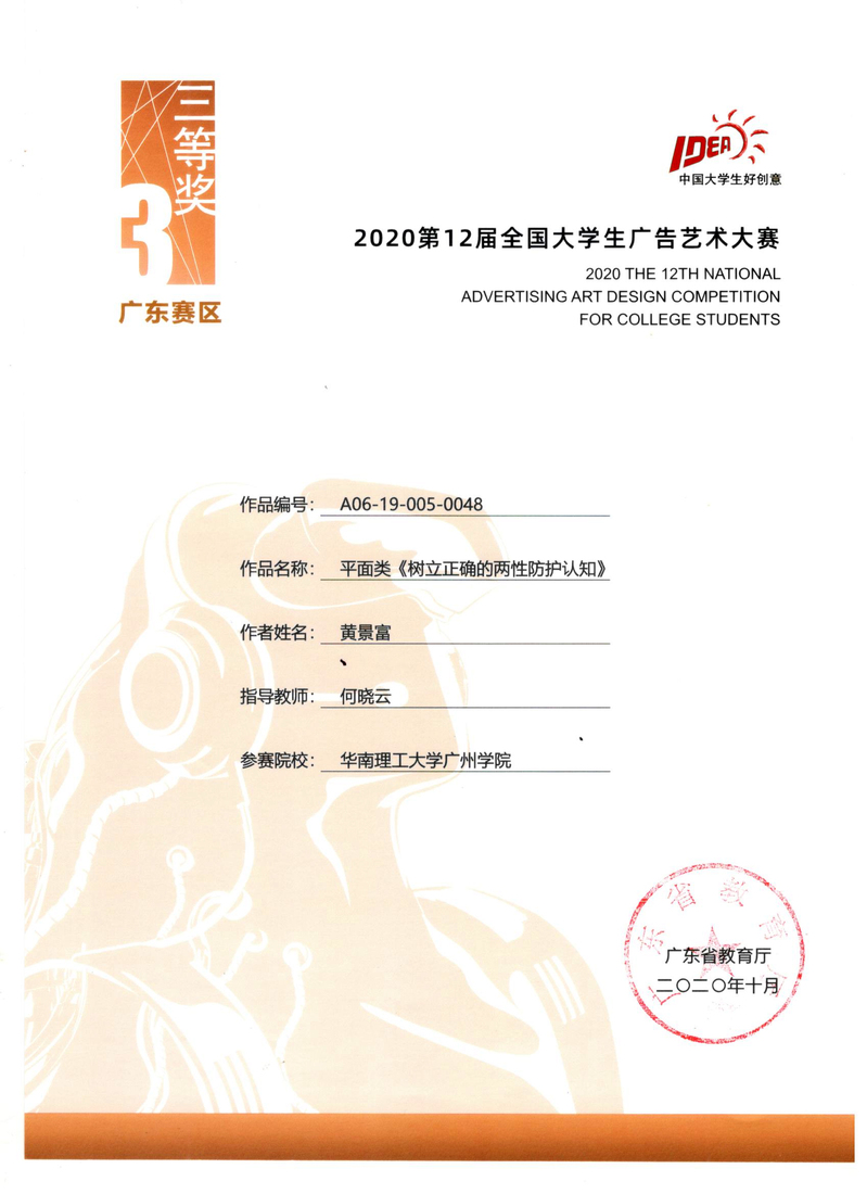 黄景富获广东赛区三等奖
