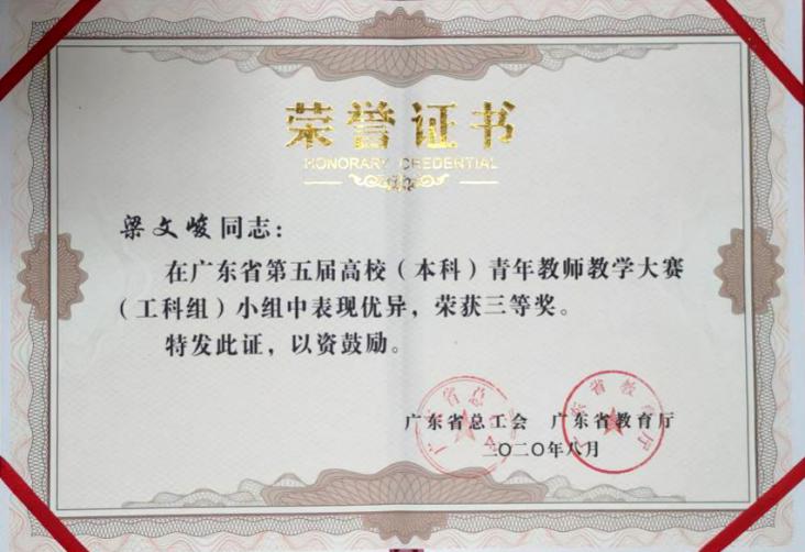 我校suncitygroup太阳新城梁文峻老师在本次比赛中(工科组)获得三等奖。