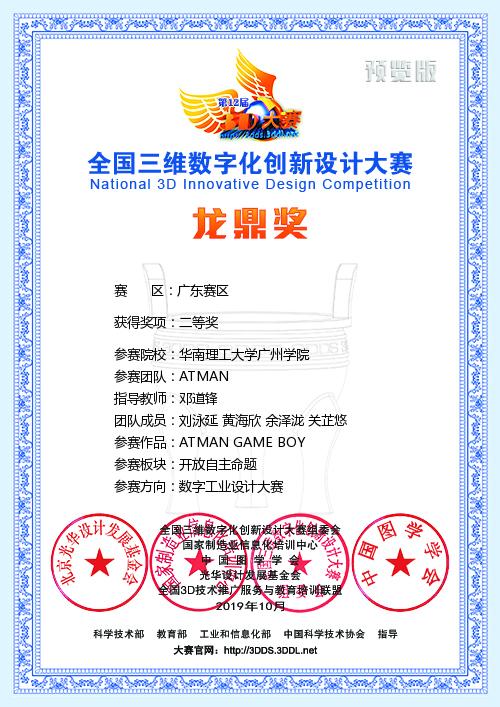 2019年全国三维数字化创新设计大赛龙鼎奖获奖