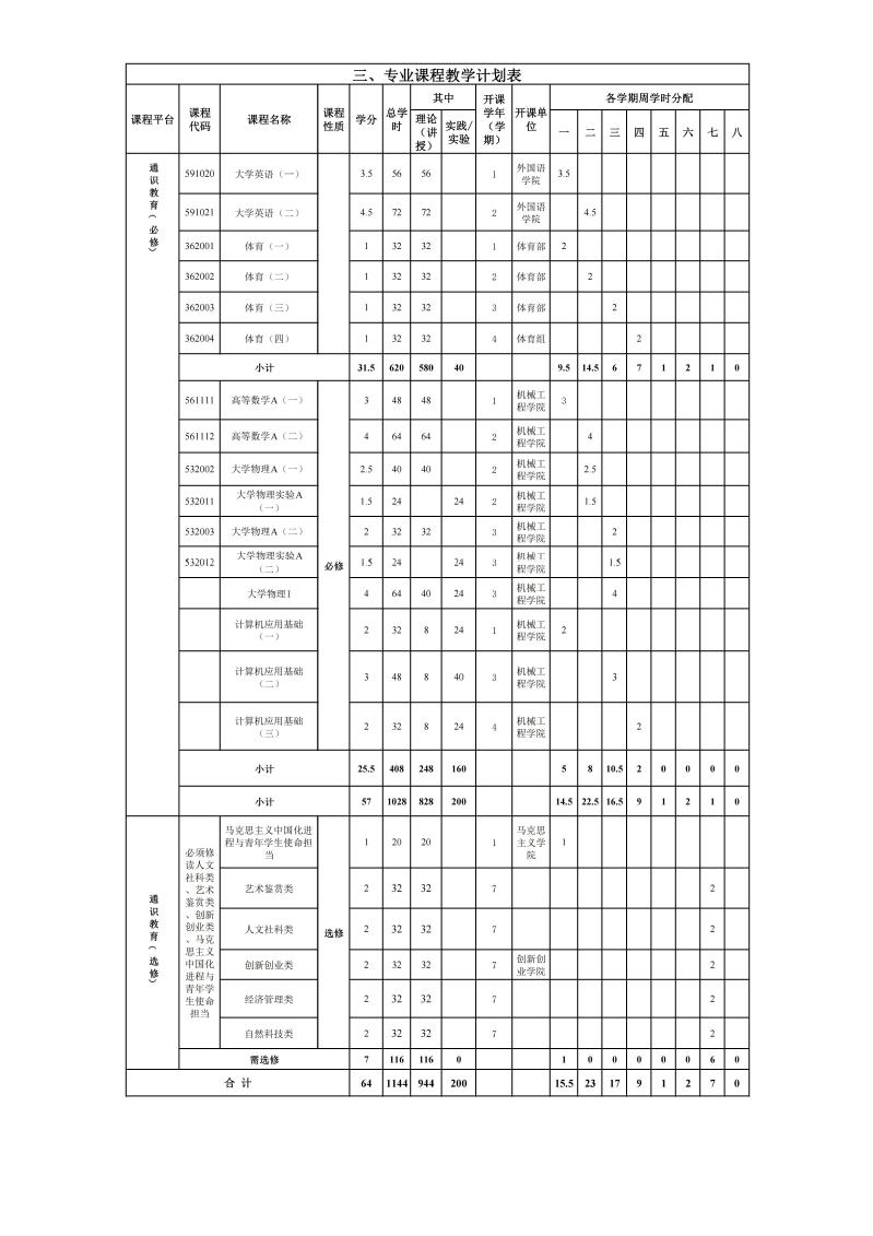 2020级本科人才培养方案