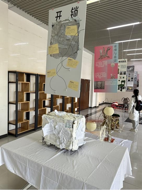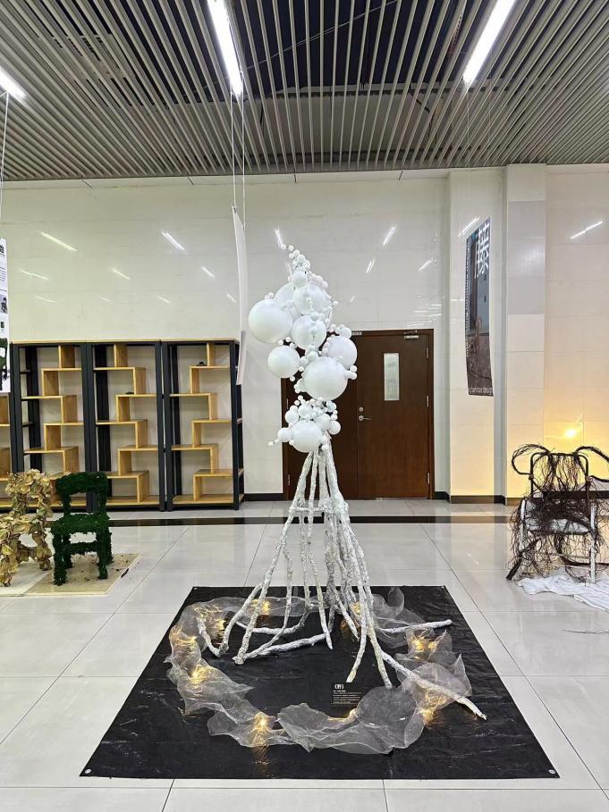 展览现场,可以欣赏到微专业同学们的8件作品,通过材料的巧妙运用,为人们带来全新的感知体验。以为部分是展览现场作品: