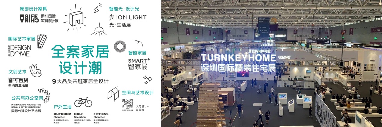 此次展会围绕了“中国新居“的主题,设置了9大主题展馆:深圳国际家具设计展、Design Dome设计万象、SMART+智家展、皆可百货·新消费生活展、设计灵感·家居材料展、空间艺术设计展·大宅设计+&花园集、ON LIGHT光·生活展、国际公建设计艺术展、国际户外生活展,净展览面积达到32万㎡。展会聚集了全国top200大品牌和全国乃至全球会展业和大家居产业上下游资源,建立了不止于家具,横跨住宅、家具、灯饰、智能、建材、材料、艺术、生活、公建与户外全人居场景的大家居一体化商业设计展。