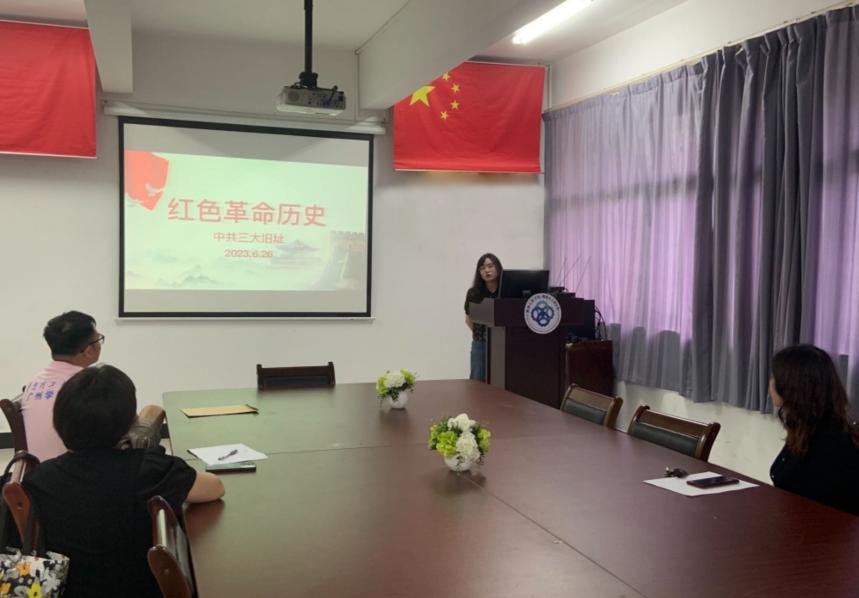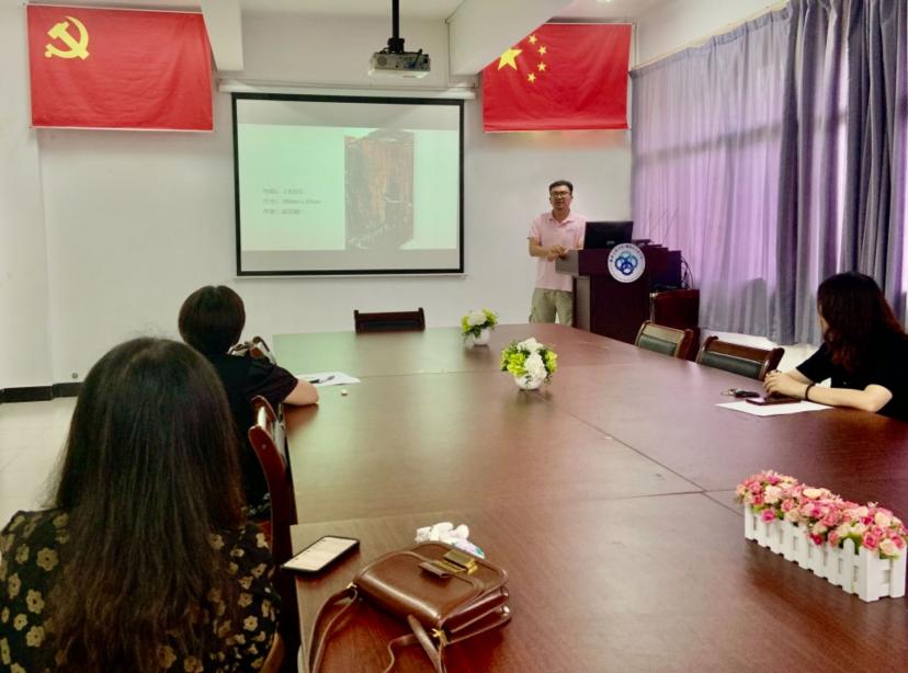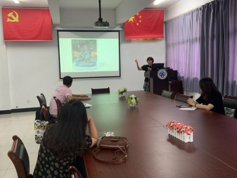 随后,党支部副书记薛青讲述了在广州雕塑公园里那著名的雕塑作品《艰苦岁月》,作者的创作心路勾起了老师们对吹笛子老红军和小红军那段革命历史回忆。冯颖老师用18级学生的产品设计获奖作品《小小侦查员》,讲述了“侦察英雄”郭滴海在1930年冬天主动担任引诱敌军的任务,成功帮助红军歼灭白军的革命历史故事。张熠老师通过油画作品《中共三大》讲述了中共三大的会议内容和召开意义,以图片介绍的方式带领老师们浏览了经过修复后的中共三大旧址。