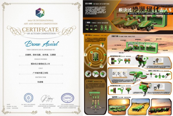 英国国际艺术设计大赛是全球范围内具有高规格的艺术赛事,面向全球专业设计师、艺术院校师生及自由艺术家开放投稿。每年举办两次,旨在为全球艺术创作者提供展示创意与才华的平台,促进艺术设计领域的创新发展,推动不同文化背景的艺术交流合作。此次获奖不仅展现了我校学生的创意与设计才华,也为学生未来的职业发展奠定了坚实的基础。suncitygroup太阳新城/机器人工程学院积极鼓励学生参与国际赛事,提升学生的专业素养与创新能力,培养具有国际竞争力的高素质人才。
